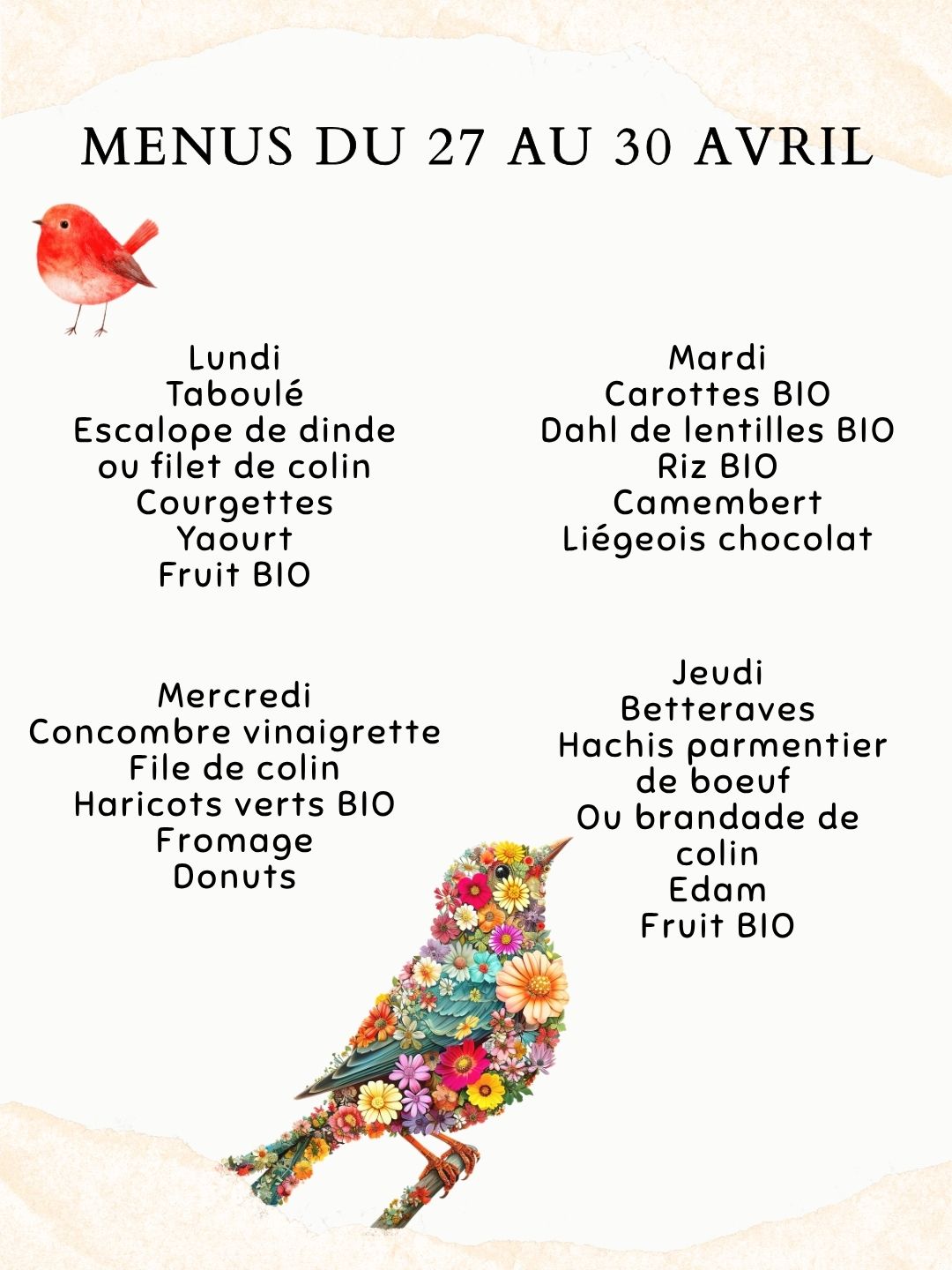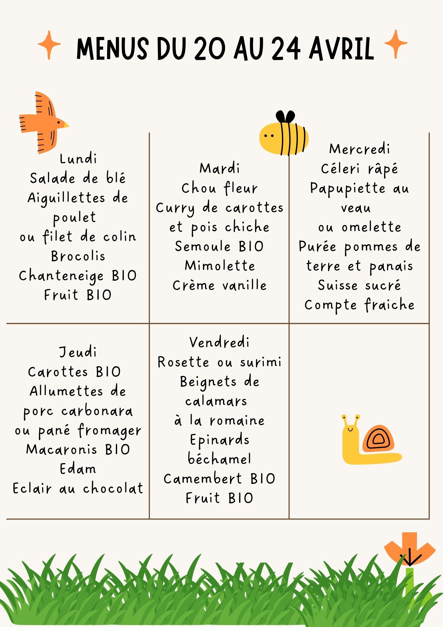 Les tarifs, au 1er septembre 2024, incluent le prix du repas ET le prix de la garderie :